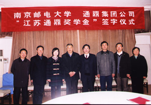 12月7日下午,江苏通鼎集团公司在南京邮电大学设立“江苏通鼎奖学金”协议书签字仪式在我校举行。校党委书记、