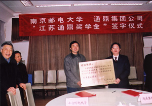根据协议,通鼎集团公司在南京邮电大学设立总额为50万元人民币的“江苏通鼎奖学金”,分五年(2005年—2009