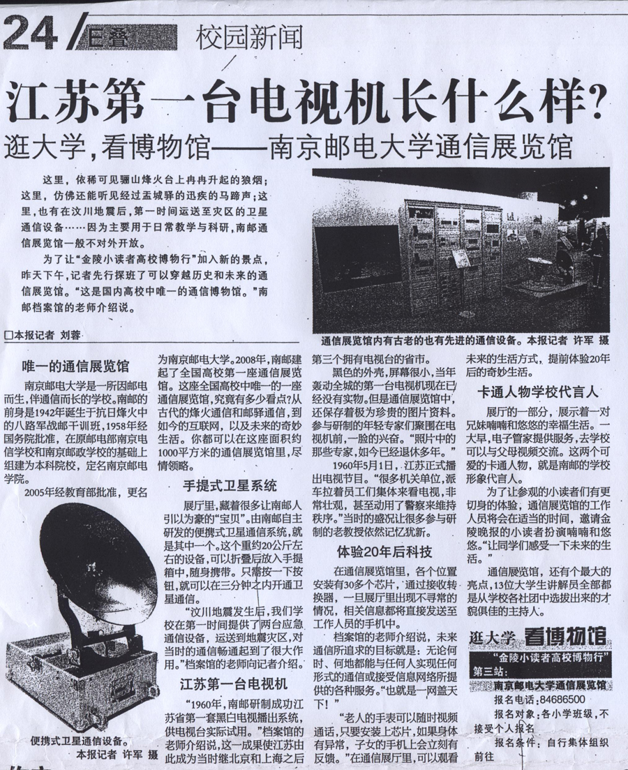 【金陵晚报】逛大学,看博物馆——南京邮电大学通信展览馆