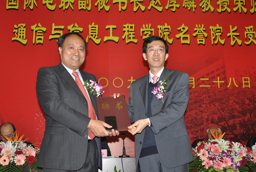 CNII网讯 日前,国际电信联盟副秘书长赵厚麟获批准正式调南京邮电大学,成为该校的一名在编教授。学校为他举行了隆重的“国际电信联盟副秘书长赵厚麟教授荣归母校暨通信与信息工程学院名誉院长受聘仪式”。