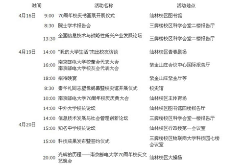 中国江苏网4月15日讯 记者今天从南京邮电大学了解到,4月20日,该校将迎来办学70周年庆典,届时将有多场“重量级”学术交流活动,十几位两院院士和一名诺贝尔奖获得者将作学术报告。