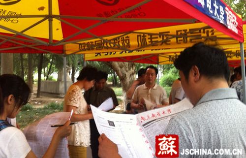 中国江苏网6月26日讯(记者 罗鹏 王静)在高考成绩宣布后的第二天,江苏各家高校的招生咨询活动也“各自摆擂”,纷纷办起了咨询会。今天上午,南京工业大学和南京邮电大学的高考招生咨询会就分别在各自学校举行,数千名家长和学生来冒着酷暑从省内各地赶到现场咨询。
