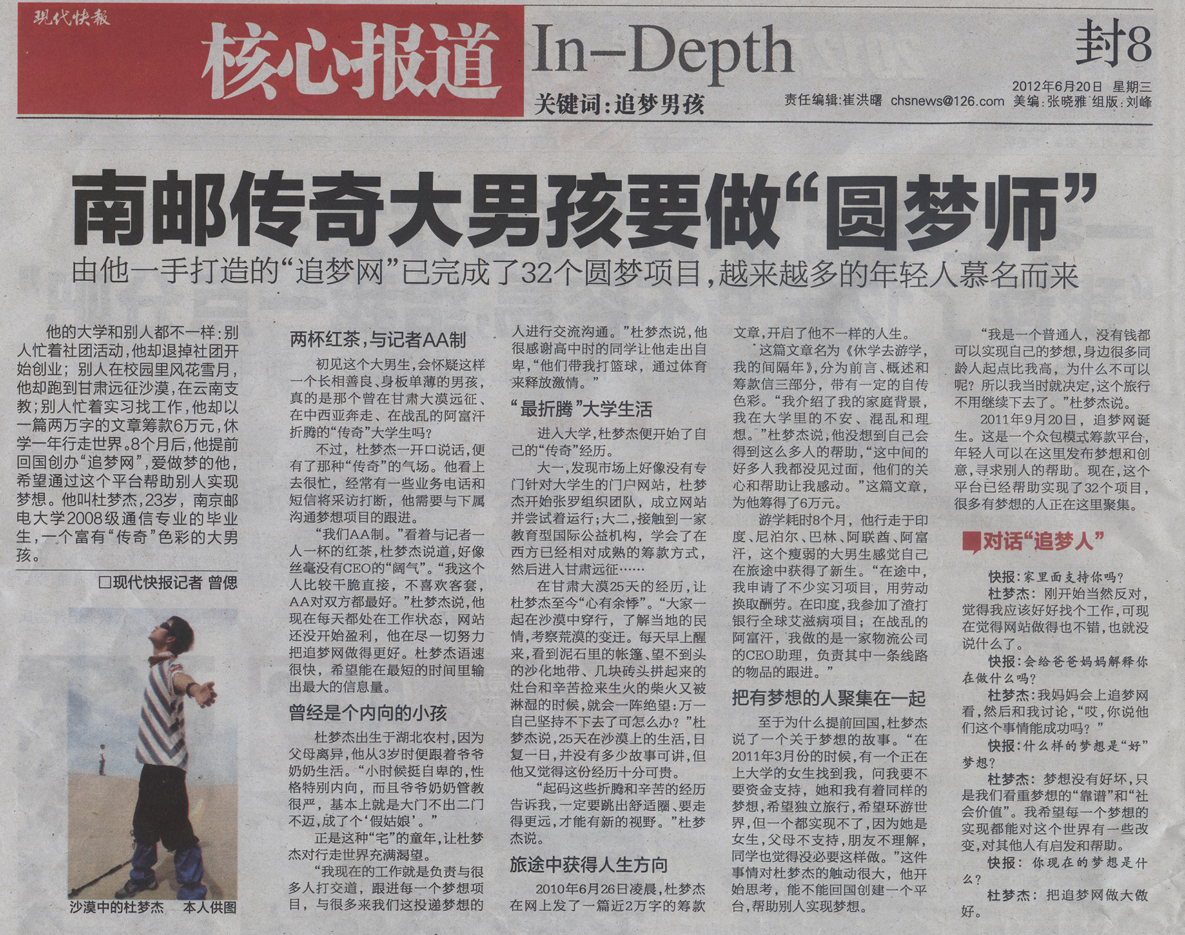 【现代快报】南邮传奇大男孩要做“圆梦师