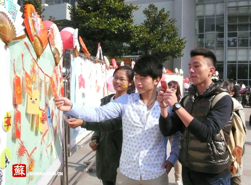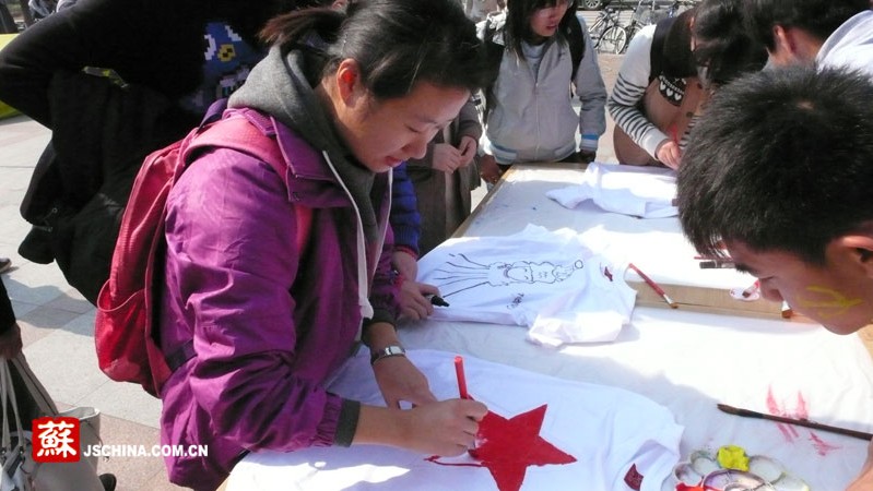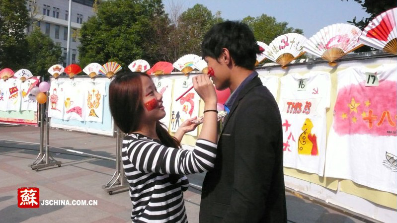 11月7日,南京邮电大学的学生举办了以“火红十八 炫彩青春”为主题的校园手绘节。大学生们在T恤、徽章、手机保护壳、扇面上彩绘作品,表达对十八大的热切期盼之情。