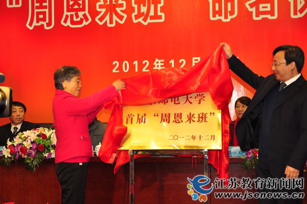 12月22日,南京邮电大学举行首届“周恩来班”命名仪式。该校人文与社会科学学院2011级公共事业管理班被命名为“周恩来班”。周恩来邓颖超秘书、全国政协原副秘书长、周恩来思想生平研究会顾问、周恩来邓颖超研究中心顾问赵炜和南京邮电大学党委书记刘陈共同为该校“周恩来班”揭牌。