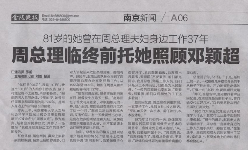 【金陵晚报】周恩来临终前托她照顾邓颖超