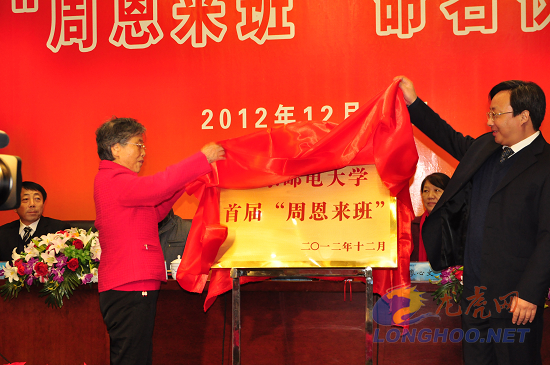 12月22日,南京邮电大学举行首届“周恩来班”命名仪式。该校人文与社会科学学院2011级公共事业管理班被命名为“周恩来班”。周恩来邓颖超秘书、全国政协原副秘书长、周恩来思想生平研究会顾问、周恩来邓颖超研究中心顾问赵炜和南京邮电大学党委书记刘陈共同为该校“周恩来班”揭牌。