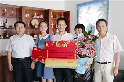 “文科类、理科类、自主选拔第一名,都花落同一个地级市,在南邮历史上还没有遇到过。”王宗荣说,南邮也从来没有送录取通知书上门过。这次到泰州来,是南邮对3名优秀学子的祝贺,同时也体现了南邮对优秀人才的期盼。