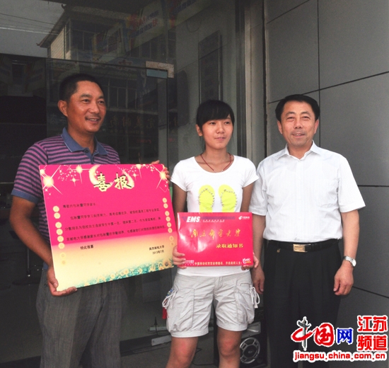 骄阳似火,挡不住南京邮电大学求才的脚步。7月25日,南京邮电大学党委常委、副校长王宗荣一行来到泰州,给三名优秀考生送去录取通知书。今年南京邮电大学录取的理科类、文科类及自主选拔的第一名,都来自泰州。