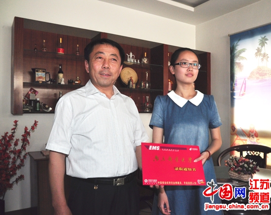 泰兴市滨江开发区的理科生张曼高考成绩377分。她毕业于泰兴中学,自认为是“默默无闻的小草”,没想到会成为今年南京邮电大学录取的理科类第一名。更让她想不到的是,校方会送录取通知书上门。张曼一家上午一直在家等候。11时,南邮副校长王宗荣一行到达后,给张曼送上录取通知书,她被录取到通信工程专业。张曼的父亲随即在自家的楼下燃放鞭炮庆祝。王宗荣副校长勉励张曼入学后继续努力学习,争取新的进步。面对即将开始的大学生活,张曼希望“除了抓紧学习,还能参加绘画方面的社团,丰富自己的大学生活”。