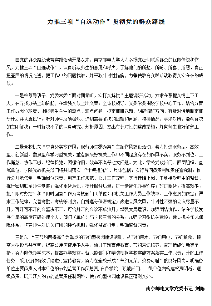【江苏教育报】A1版 力推三项“自选动作”贯彻党的群众路线