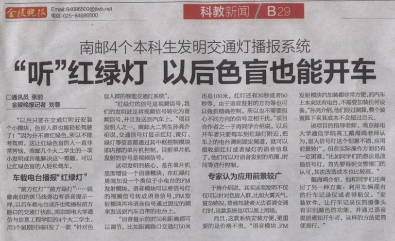【金陵晚报】“听”红绿灯 以后色盲也能开车