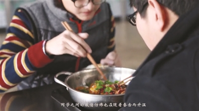 讲述完学校的美食,镜头切换至校外的“南邮广场”,蒙自米线店的老鹅汤秀才米线、最高鸡密店的鸡排和外酥里嫩的手扒鸡,均通过镜头将厨师的烹制过程以及客人们享受食物的过程完美的展现在了观众的眼中。“不少学校都有关于自己美食的纪录片,我们南邮有这么多的美食,为什么不做一个呢?”《舌尖上的南邮》导演杨晓航同学说。正是怀着这样的初衷和热情,他和他的团队——南邮传媒与艺术学院光影空间工作室经过20多天的努力,终于创作出了南邮第一部美食纪录片。