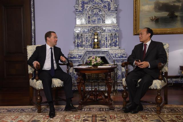 1月19日,俄罗斯总理梅德韦杰夫在莫斯科郊外官邸会见赵厚麟。(图片来源:俄罗斯网站)