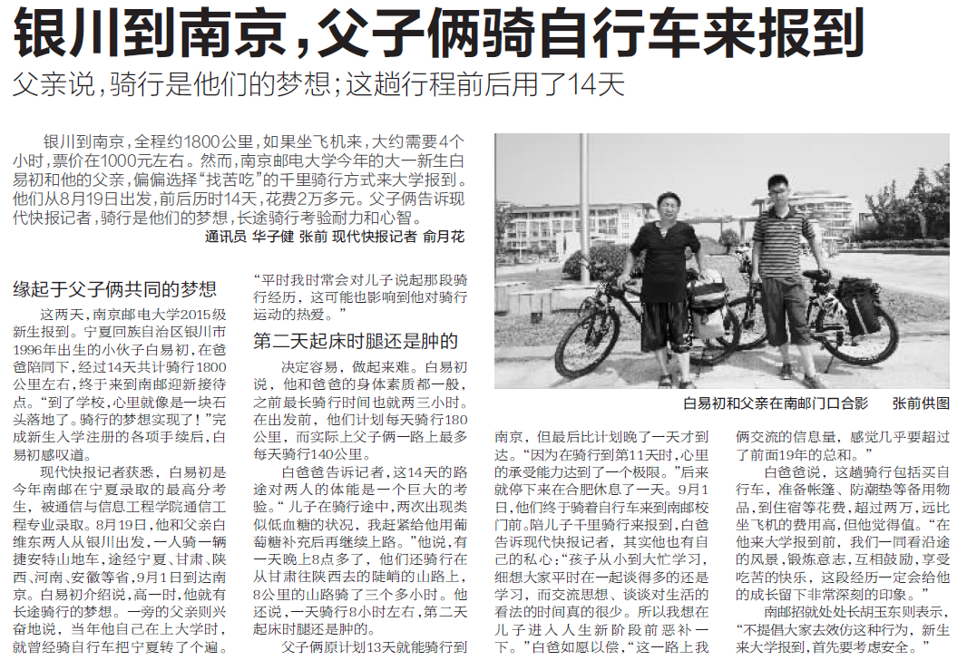 【现代快报】银川到南京,父子俩骑自行车来报到