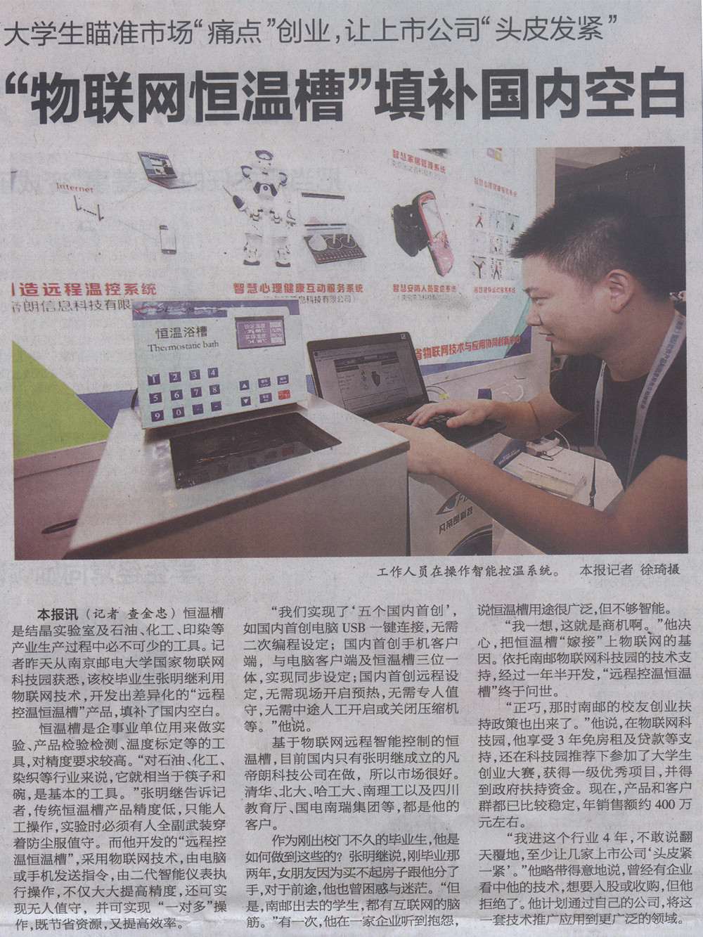 【南京日报】“物联网恒温槽”填补国内空白