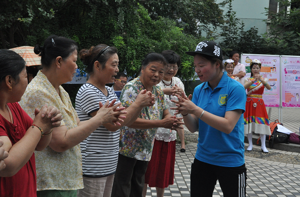 志愿者在秦淮区御道街蓝旗社区教老人做手指操 中国青年网通讯员李心电提供