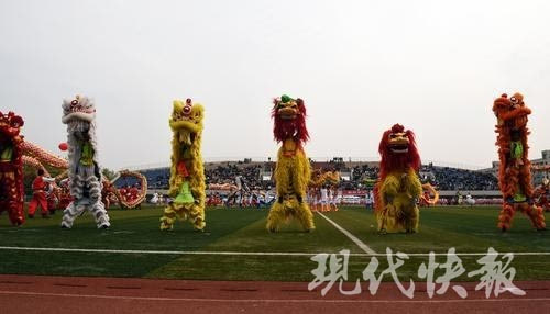 现代快报记者在现场看到,此次舞狮表演由10条小龙、8头狮子,以及20面大鼓等组成。董军介绍说,140人中绝大部分队员来自经济学院,其中30人是女生。