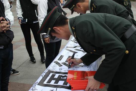 国防生参与签名活动