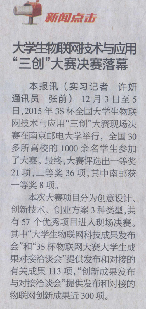 【江苏教育报】大学生物联网技术与应用“三创”大赛决赛落幕