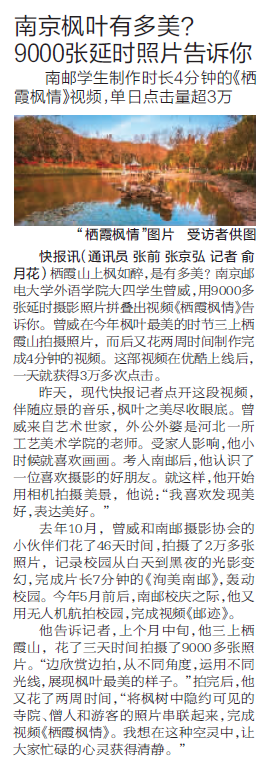 【现代快报】南京枫叶有多美?9000张延时照片告诉你