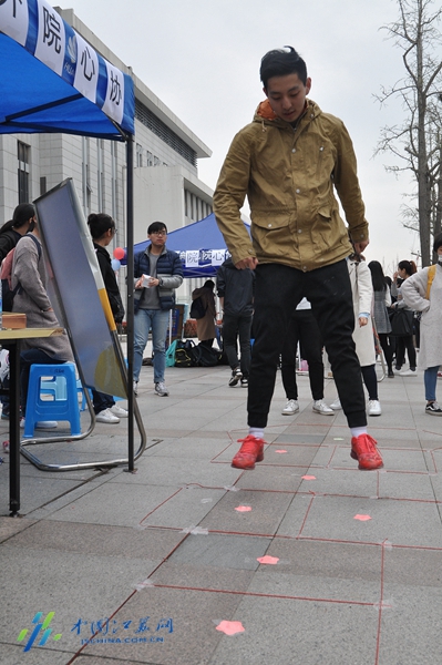 中国江苏网4月1日讯(通讯员 张前 赵雨柔 记者 罗鹏)“碎碎碎”“倒倒倒”“跳格子”......在南京邮电大学仙林校区,一些简单的游戏吸引了众多大学生。原来,该校第二届心理博览会正在进行。