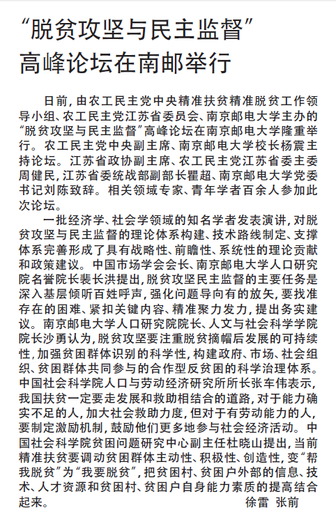【新华日报】“脱贫攻坚与民主监督”高峰论坛在南邮举行