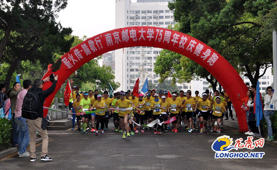 龙虎网讯 (记者 朱晶晶 通讯员 尤萱 摄影 尤萱)“砰”地一声发令枪,由南邮教师和校友组成的五十余名“马拉松精英跑”选手和首站百名“接力跑”师生冲出了起跑线。今天(4月16日)早晨七点,为庆祝学校办学七十五周年的“校庆跑”活动在南京邮电大学三牌楼校区内举行。