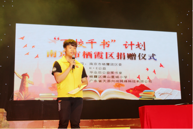六·一儿童节,由毕业后公益图书室,H·E公益,南京市栖霞团区委,南京电视台联合主办的公益捐赠仪式在南京市摄山星城小学体育馆隆重举行。全校师生与出席嘉宾共同见证了此次捐赠活动。此次捐赠活动共为栖霞区6个小学,2个社区建立公益爱心图书室。