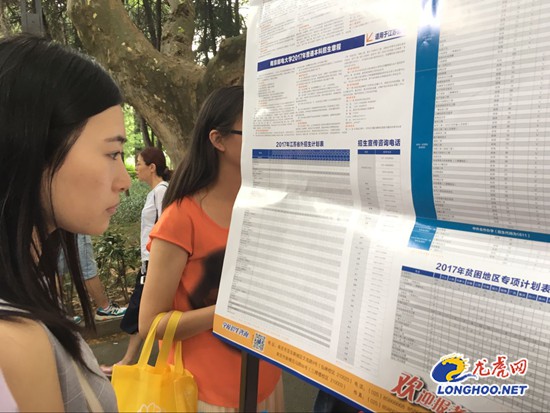 据悉,本场高招咨询会是从下午1点钟开始,持续到5点左右结束。但是记者从现场看到,从12:30以后,就陆续有家长带着刚高考完的孩子过来咨询。匆匆赶来的陆先生是帮自己的孩子来提前了解学校选择和志愿填报的,“孩子考了352分理科,报你们学校还能报的上啊?”陆先生在南京邮电大学的咨询台问道。