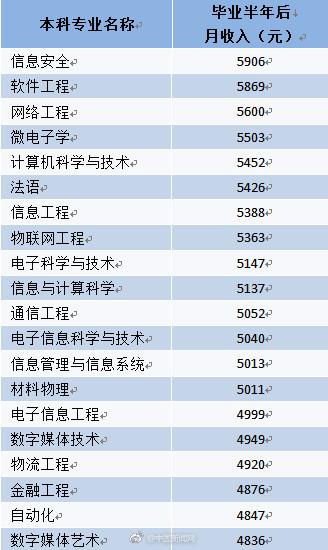 本科专业“高薪榜”前20名 南邮15个专业上榜