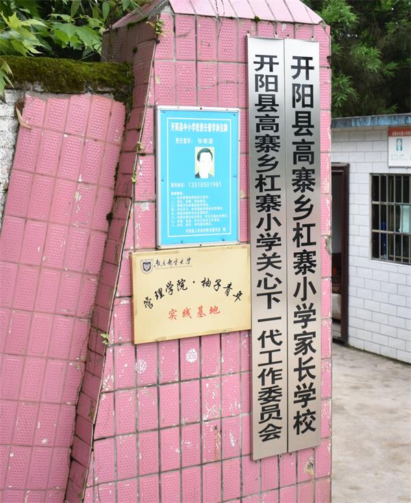 7月7日,南京邮电大学“柚子青年”暑期社会实践基地揭牌仪式在贵州开阳高寨乡杠寨小学举行。仪式上,南京邮电大学管理学院党委副书记邓艳华老师与杠寨小学左昌德校长签署了《共青团“青年就业创业见习基地”合同》,并为实践基地揭牌。贵州省慈善总会项目部部长邓建荣,杠寨村村支部书记,指导老师闾越、唐捷、刘婧、韩钰铃,11名学生志愿者以及杠寨小学的全体师生参加了此次活动。