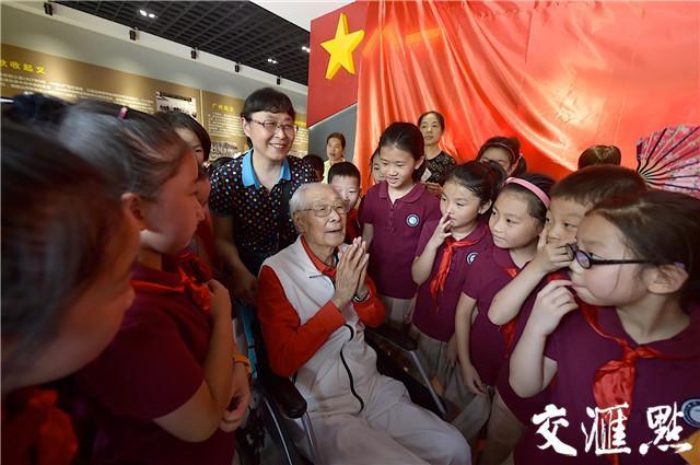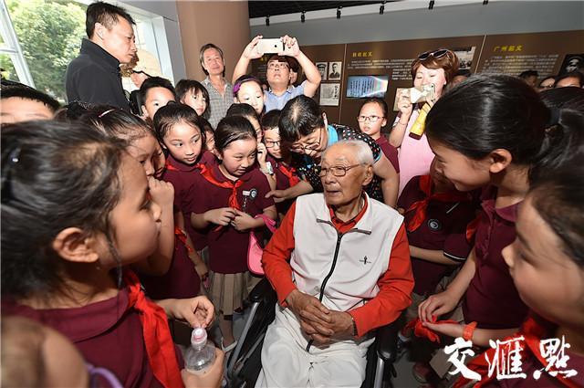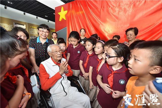 105岁的老红军秦华礼现场给孩子们讲述当年的故事。