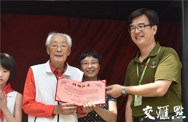 105岁的老红军秦华礼现场捐赠了两件抗战文物。
