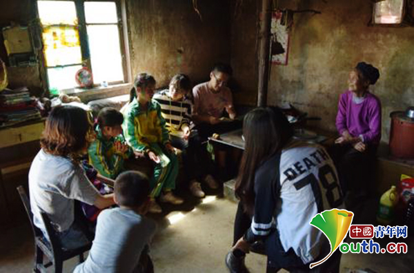 柚子青年志愿者走访贫困孩子家庭。南京邮电大学供图