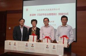 9月27日,北京崇学文化发展有限公司向南京邮电大学捐赠多语种《习近平谈治国理政》仪式在仙林校区举行。北京崇学文化发展有限公司总经理余富文,南京邮电大学党委书记刘陈,校党委常委、副校长李子全出席仪式。