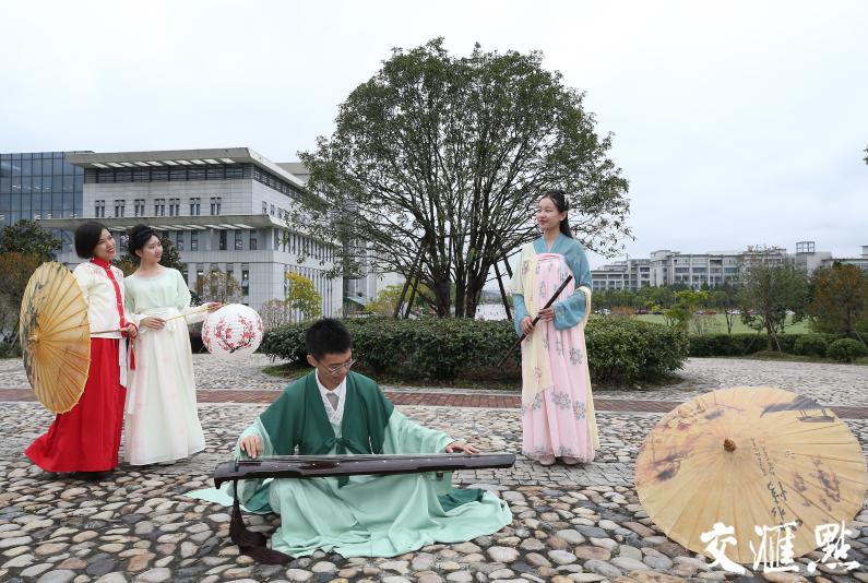交汇点讯 金秋送爽,南京邮电大学仙林校区丹桂园中千株丹桂近日陆续开放,淡雅的香气沁人心脾,引得师生们徜徉期间。中国古代就有赏花的习俗。学生社团沅芷古琴社的几位学生效仿古人,身着汉服,在“丹桂王”前抚琴舞袖,在桂花林间赏花吟诗。几分童趣,几分甜美,自由放松。实习生 陈俨 交汇点记者 万程鹏 摄