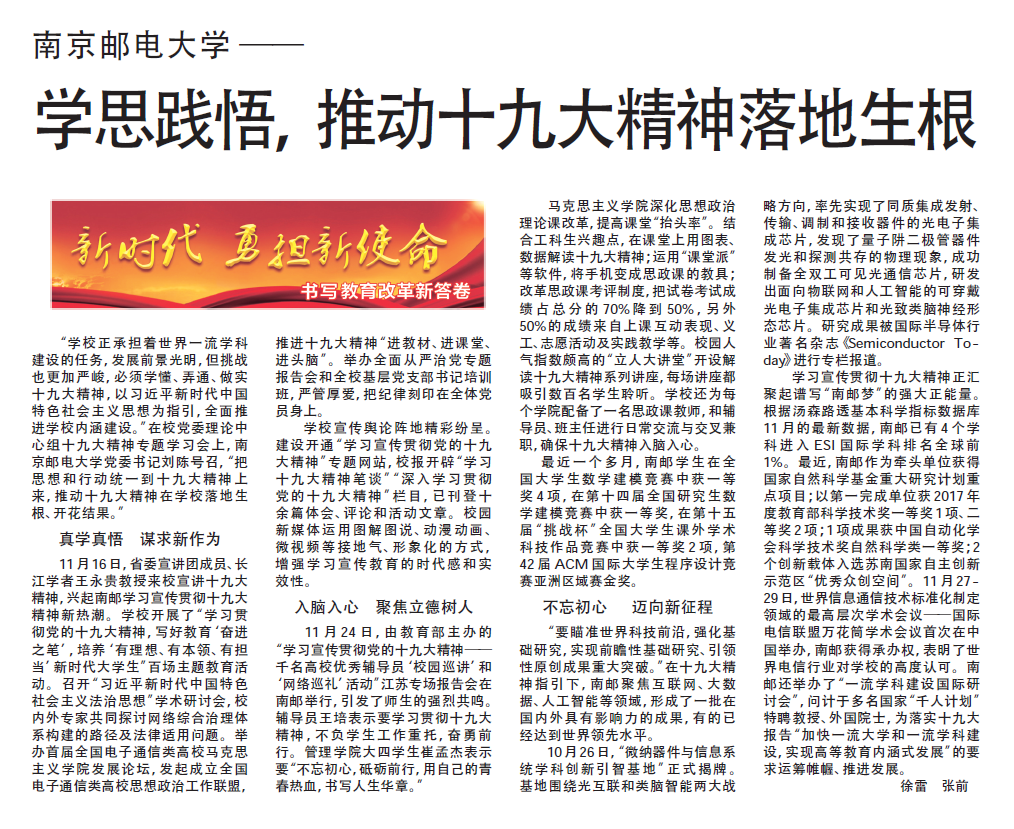 【新华日报】学思践悟, 推动十九大精神落地生根