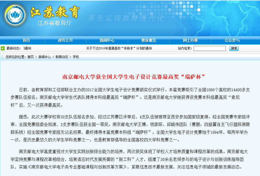 【江苏教育】南京邮电大学获全国大学生电子设计竞赛最高奖“瑞萨杯”