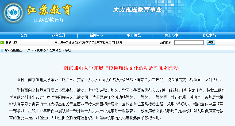 【江苏教育】南京邮电大学开展“校园廉洁文化活动周”系列活动