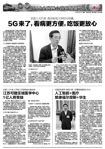 李克强总理在政府工作报告中谈到加快新旧发展动能接续转换时,指出要深入开展“互联网+”行动,推动大数据、云计算、物联网广泛应用。全国人大代表、农工党中央副主席、南京邮电大学校长杨震在接受记者采访时谈到,今年5G的国际标准就会出台,商用也不会很久,以人工智能为基础的“互联网+”,必定会影响人们生活的方方面面。