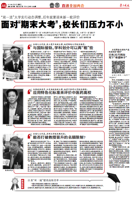 要建设一流的学科,需要吸引、培养一流的名师。去年江苏下放了所有本科高校教师职称评审权,一方面提高了学校的办学自主权,另外一方面通过精准的措施改革,激发了各个层次各类教师的积极性。但是职称晋升中还有需要解决的问题,“比如研究型大学教授高级职称占比的问题,高校正副教授的名额有一定限制,我们对正副教授的比例也有规定。需要花些精力来进行改革。”