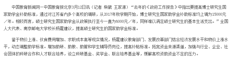 【中国教育新闻网】杨震代表:提高硕士研究生国家助学金标准