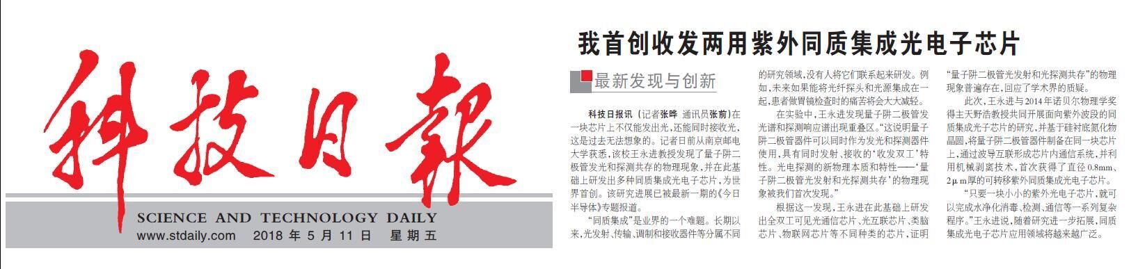 【科技日报】头版:我首创收发两用紫外同质集成光电子芯片