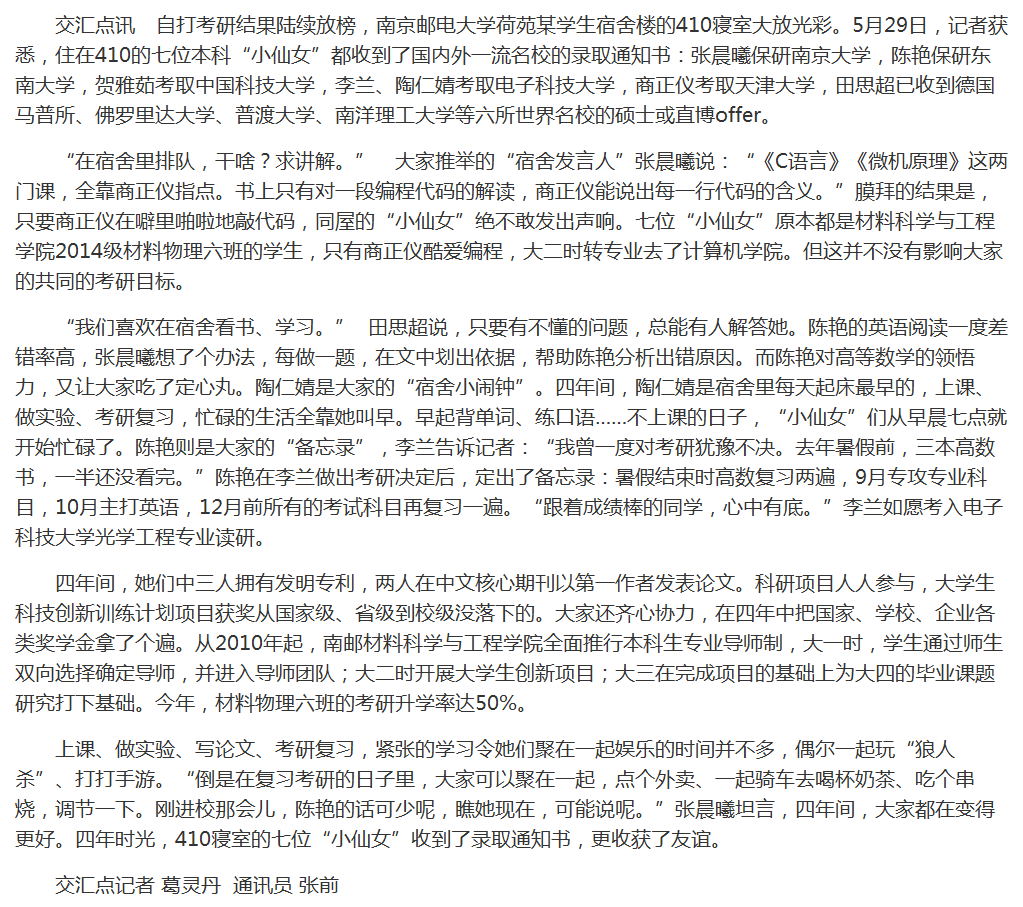 【交汇点】一人拿下6个offer! 同宿舍“七仙女”同飞国内外名校深造