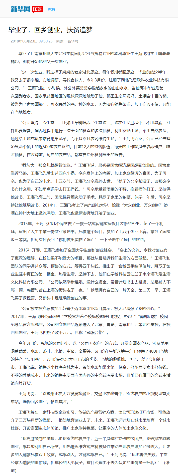 【新华网】毕业了,回乡创业,扶贫追梦