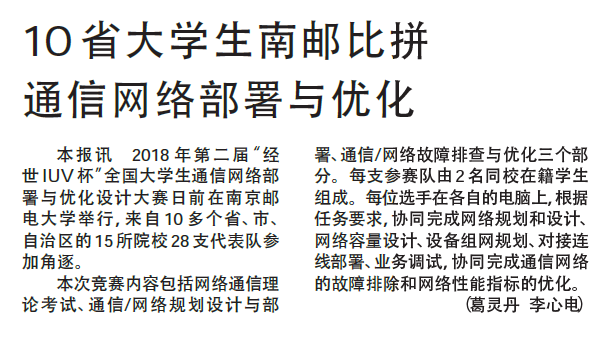 【新华日报】10省大学生南邮比拼 通信网络部署与优化