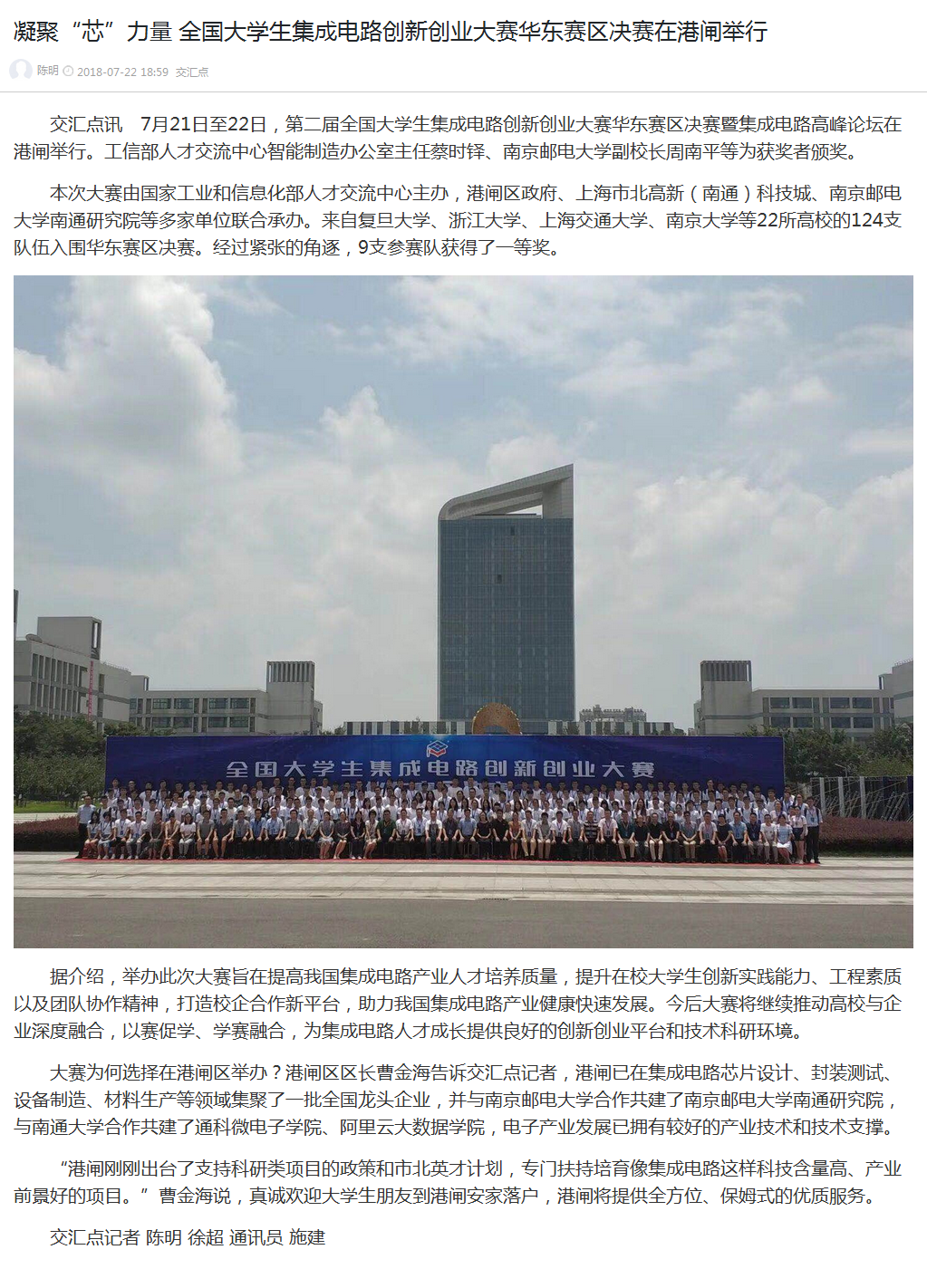 【交汇点】凝聚“芯”力量 全国大学生集成电路创新创业大赛华东赛区决赛在港闸举行