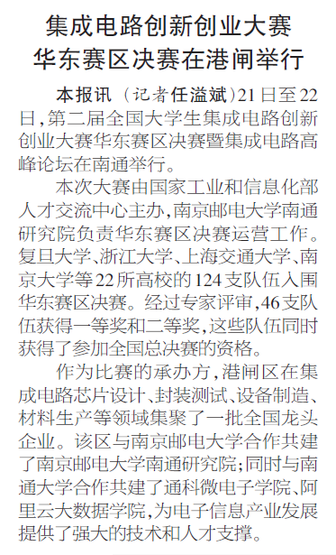 【南通日报】集成电路创新创业大赛华东赛区决赛在港闸举行