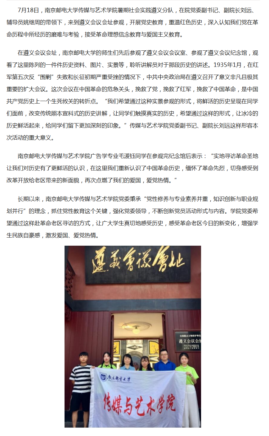 【东方网】南京邮电大学传媒与艺术学院师生赴遵义革命老区开展党史教育